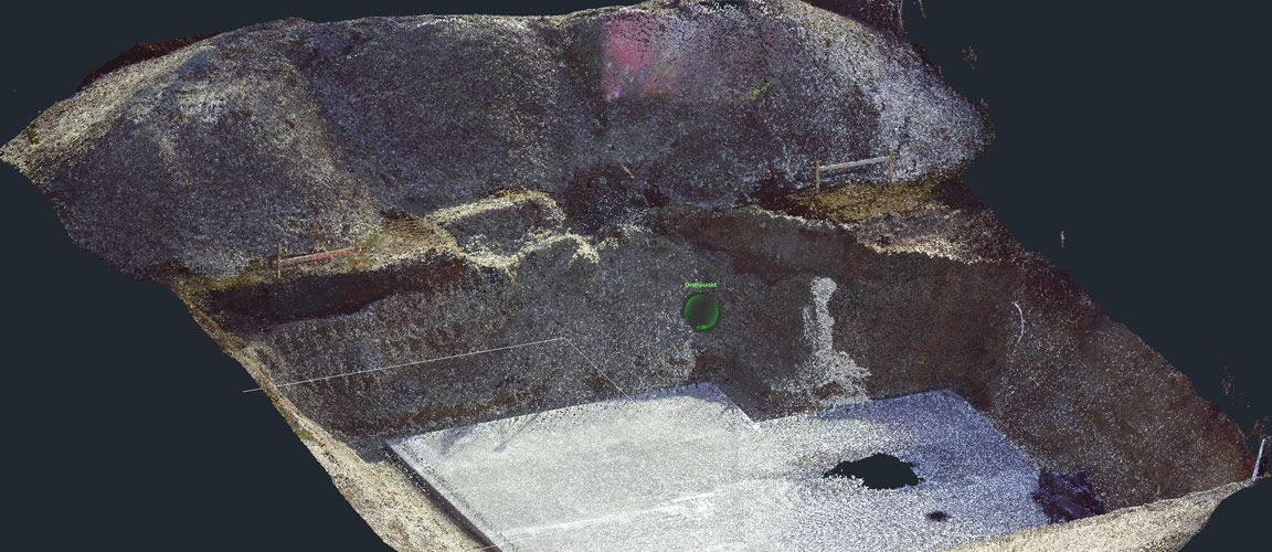 Beim Laserscanning erstellt der rotierende Laserstrahl eine dreidimensionale Punktwolke mit bis zu 900.000 Messpunkten je Sekunde. Diese vielen Scan- und Punkt-Mess-Daten werden miteinander anschließend verrechnet und stationiert. Die einzelnen Messpunkte werden mit den Bildinformationen der Laserscan-Fotokamera belegt.